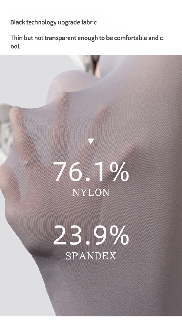 Silk-spun nylon blend: Contains 62% nylon + 35% spandex + 3% cooling factor (yam powder coating). It cools the skin by 3-5 degrees Celsius upon contact and maintains continuous cooling and ventilation.